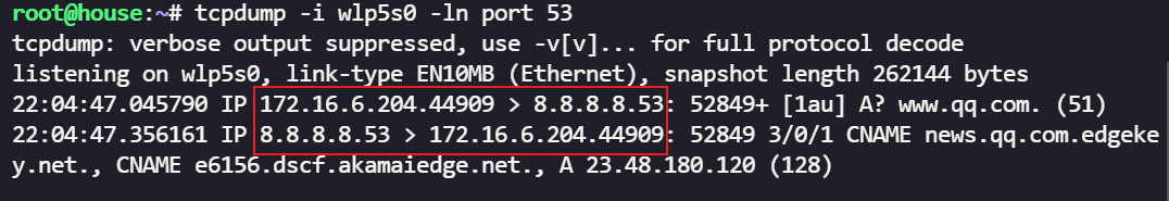 这是因为默 dnsmasq 是默认侦听所有 IP 地址的(即侦听 0.0.0.0),而当前 Ubuntu 系统有个默认的 DNS 缓存服务 systemd-resolved,其侦听了本机环回地址127.0.0.53:53,可以考虑关掉 systemd-resolved 或者指定接口或地址进行侦听: