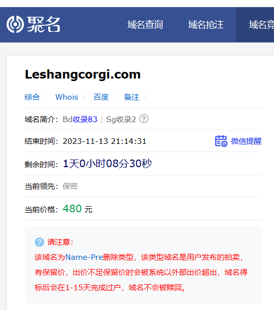 聚名从外面看是这个价格:
