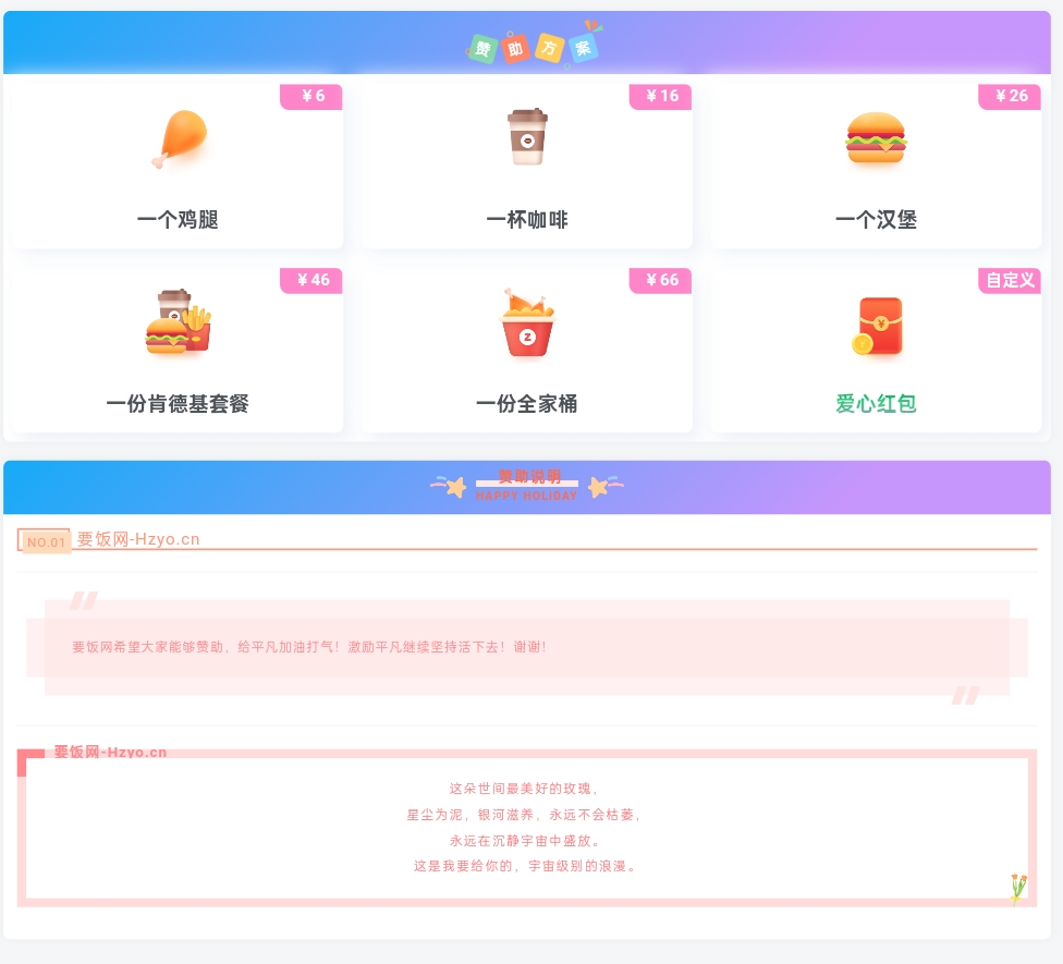 现在都在网上要饭了-漂亮的收款打赏要饭网HTML页面源码